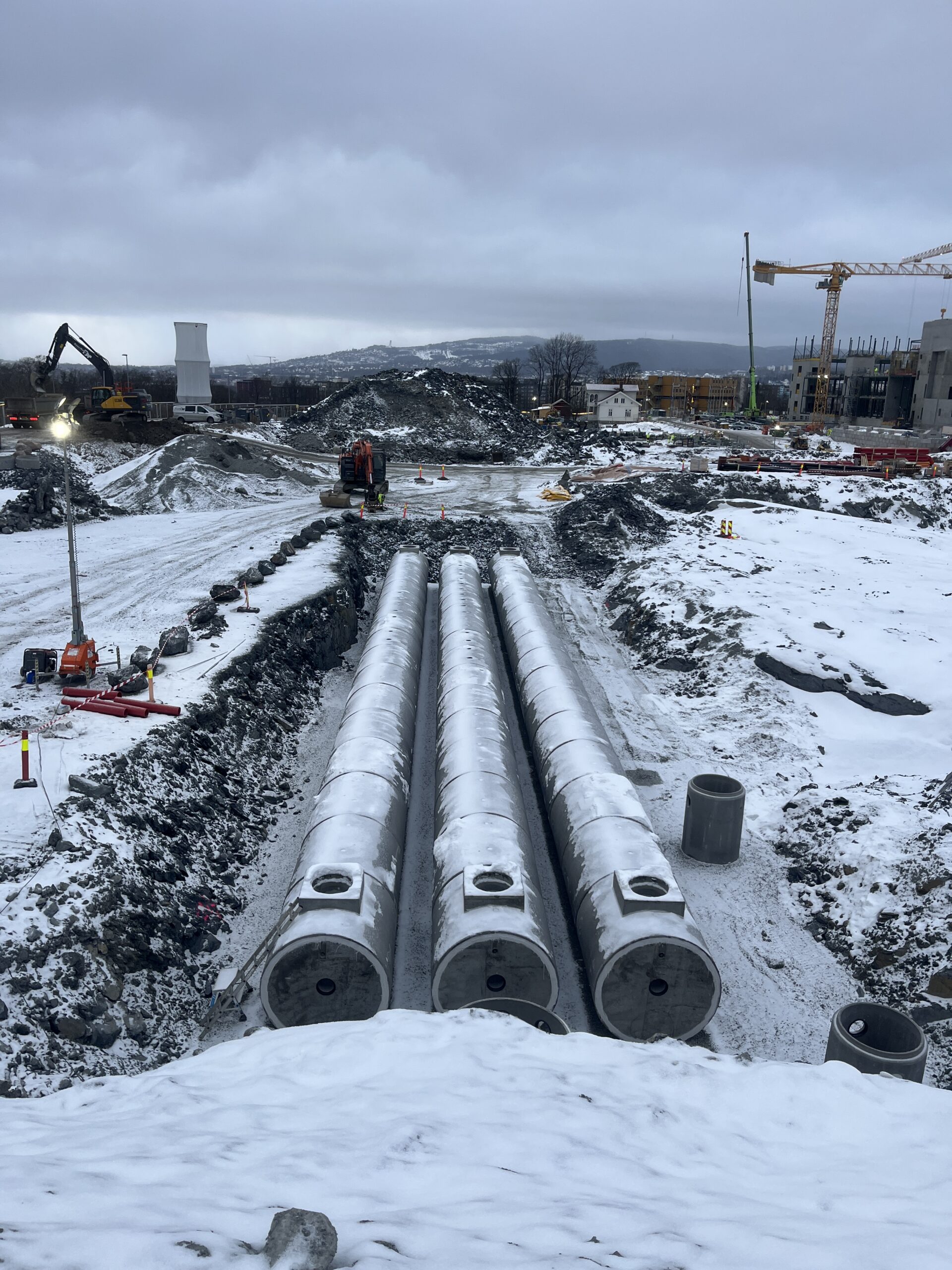 Fordrøyningsmagasinet «Akerløperen». Også DN1600 IGT rør og endestøp/nedstigninger, produsert av Loe Rørprodukter på Hokksund.