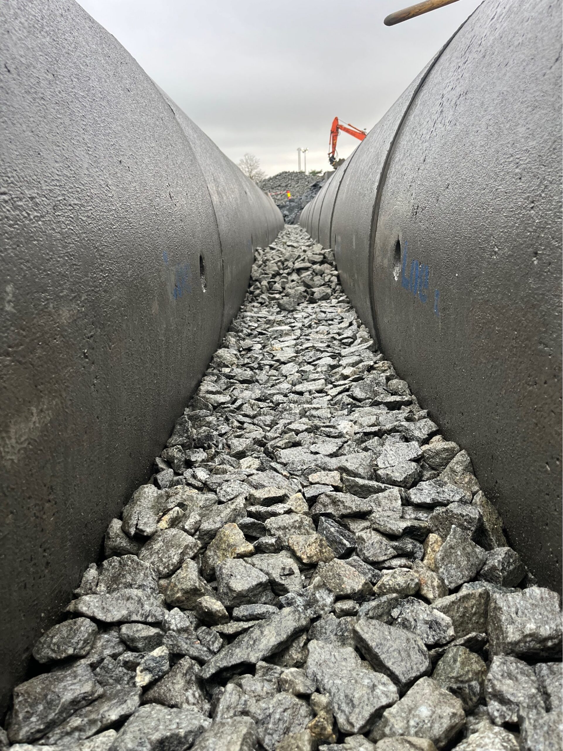 Oversiktsbilde av ferdig lagt «Nedre Varegård» – 3 parallelle fordrøyningsmagasiner i DN1600 IGT.